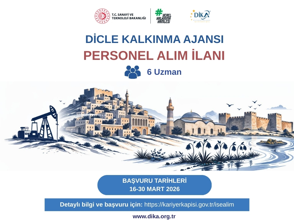 Dicle Kalkınma Ajansı (DİKA) 4 No’lu Cumhurbaşkanlığı Kararnamesi ile Kalkınma Ajansları Personel Yönetmeliği hükümleri çerçevesinde; Mardin, Batman, Siirt ve Şırnak illerinde çalıştırılmak üzere; 6 (altı) Uzman Personel alımı yapacaktır.